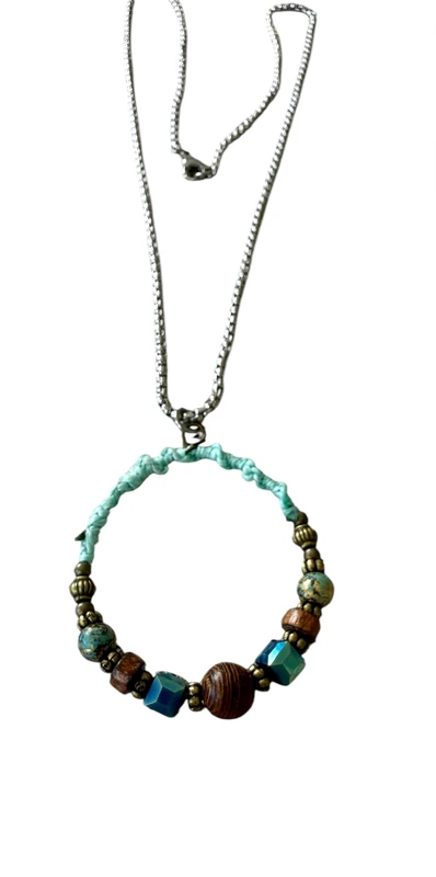 עם תליון אבני וימטג קלוע בחוט שעווה טורקיז