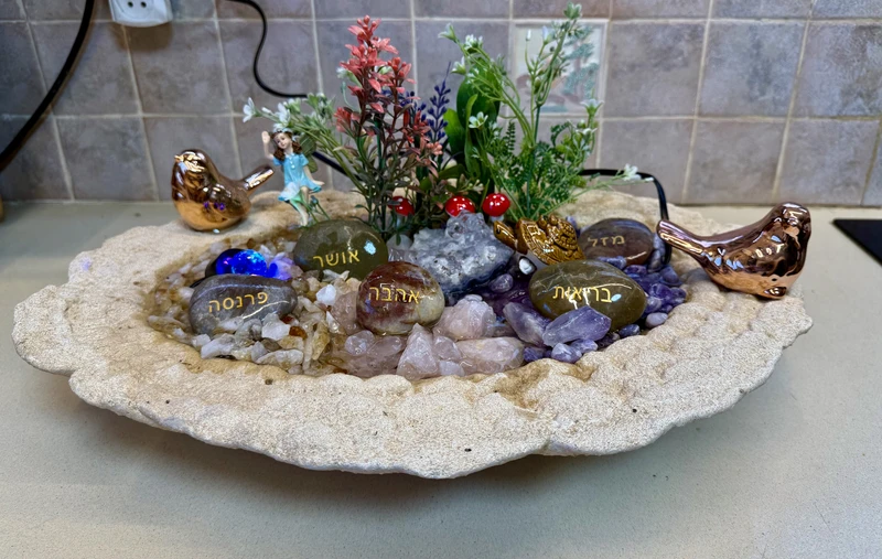 מזרקה ענקית אליפסית אורך 48 סמ אבני קריסטל אמטיסט סיטרין ורוז קוורץ מזרקה מהממת ומיוחדת