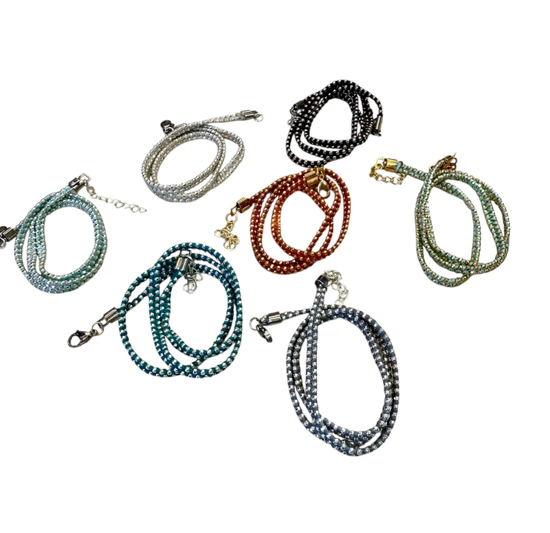 צמידי כדוריות קטנים עטופים בחוט שעווה בצבעים שונים