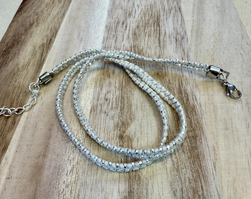 צמיד כדוריות כסף איכותי קלוע בחוט שעווה אוףוויאט