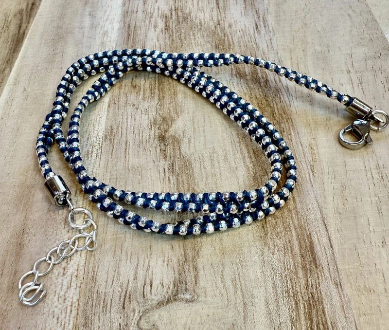 צמיד כדוריות קלוע בעבודת יד כחול נייבי