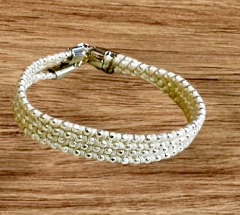 צמיד קלוע כסף חוט שמנת מיוחד (כפול מקוצר)