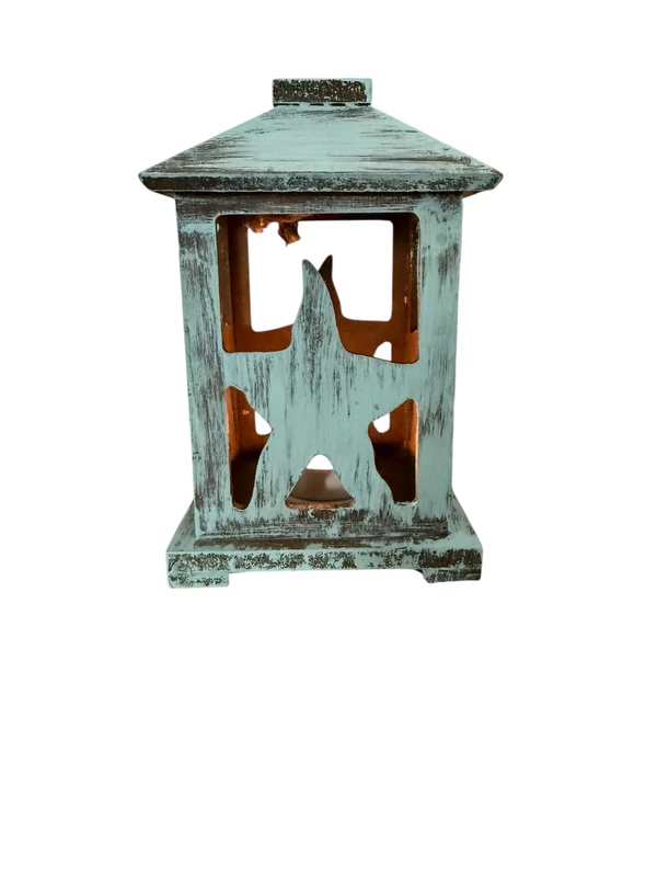 עששית עץ לנר צבועה טורקיז גובה 19 סמ קוטר 9 סמ מרובע עם חבל מיוחד.