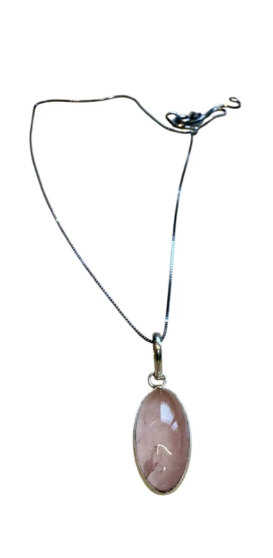 שרשרת כסף 925 עם תליון רוז קוורץ מלוטש גודל 1 סמ .