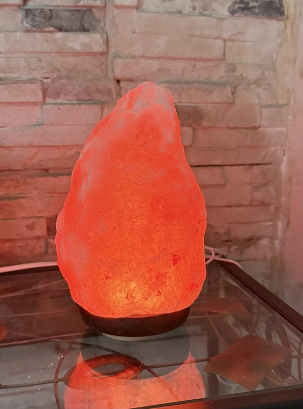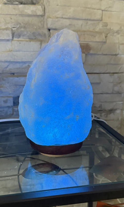 מנורת מלח (עד 4 קג) עם תאורת לד מתחלפת מיוחדת על מעמד עץ עם תאורה מיוחדת