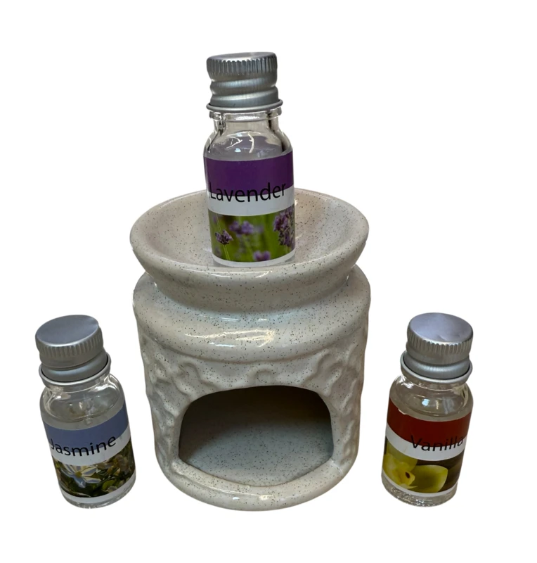 מבער קרמיקה בז מיוחד עם 3 ריחות אתרים וניל יסמין לוונדר ראשי.