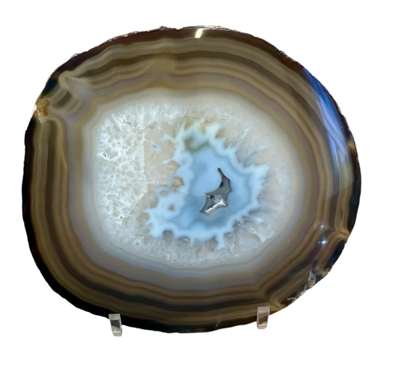 פרוסת אגת ענקית על סטנד מיוחד אבן קוורץ עם טייגר משלוב גולד 17 סמ.