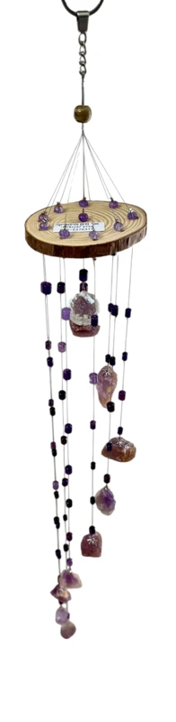 מובייל אבני קריסטל אמטיסט באיכות גבוהה 9 קנים על בסיס בוצר עץ.