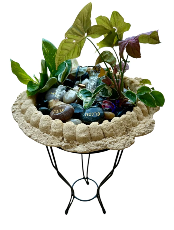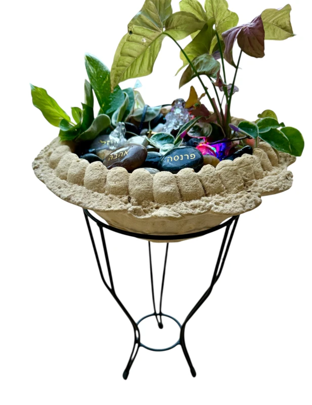 מזרקה שכולה טבע צמחים אמיתיים כד טיבעי קוטר 40 . מיוחדת בעבודת יד 2 מתאבות