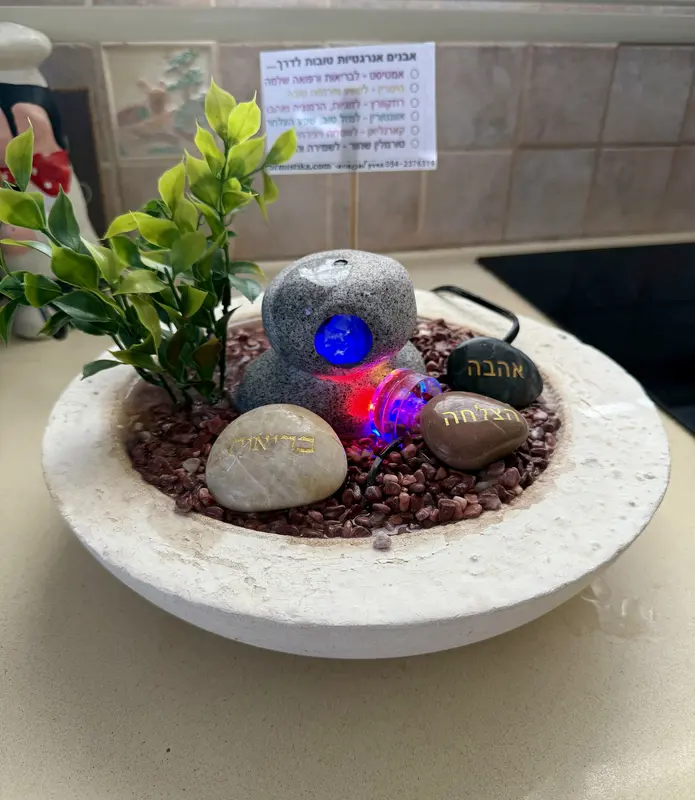 מזרקה מהטבע אבני חלוקים קטנים עם תאורה מעמד קרמיקה מובנה מבעבע מים