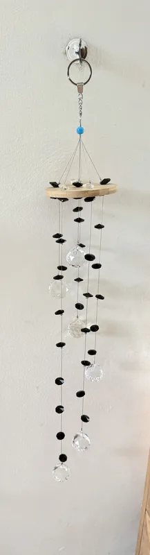 מובייל קריסטלים שחור לבן 6 קנים על בוצר עץ
